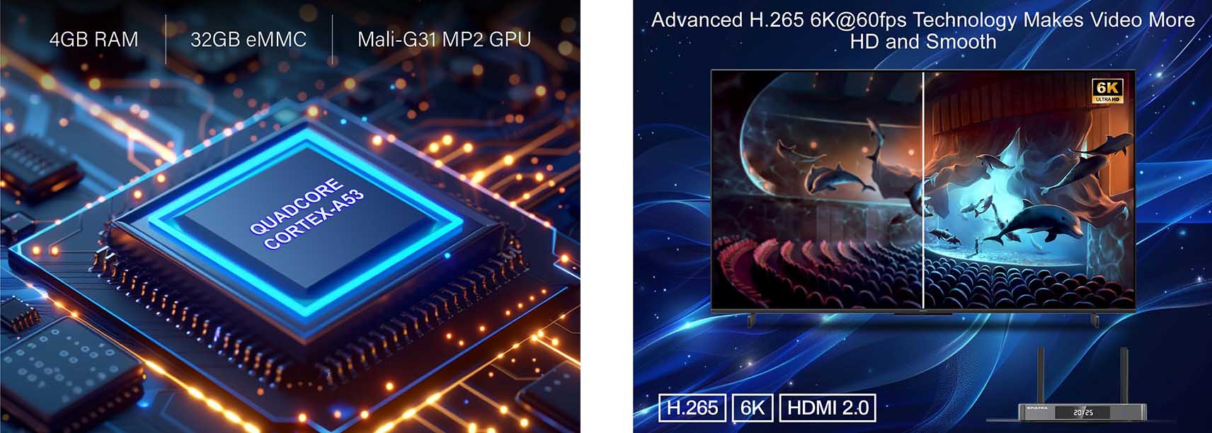 But hardware matters just as much as resolution. Powering this device is the quad-core ARM Cortex-A53 processor, recognized for its efficiency and rapid performance. This advanced chipset ensures seamless streaming, fast app launches, and effortless multitasking—eliminating annoying lags or interruptions. The synergy between powerful processing and 6K support makes the SUPERBOX S7 ULTRA an ideal companion for modern audiences demanding top-tier performance.